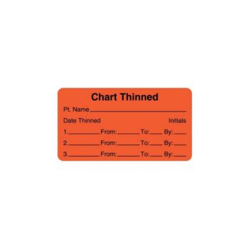 Chart Medical Label is designed to make it easier for medical professionals to keep track of large volumes of medical charts. The label is imprinted with the words “Chart Thinned” and features removable adhesive, making it easy to apply and remove as needed. Made from high-quality paper, this label is durable and long-lasting, ensuring that it can withstand the demands of a busy medical practice. With its easy-to-read design and convenient adhesive backing, the Chart Medical Label is an essential tool for any healthcare provider looking to streamline their chart management system.