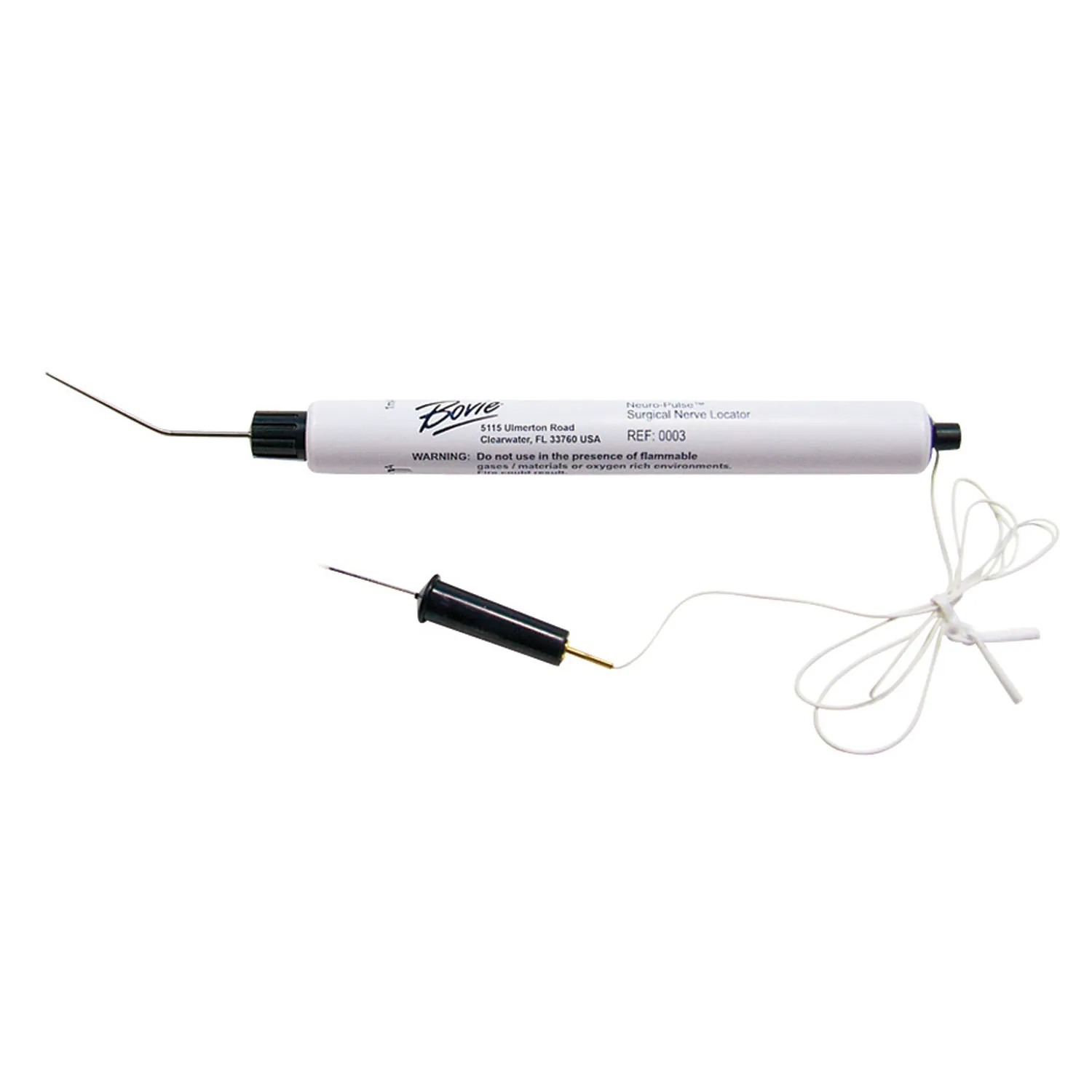 This nerve locator/stimulator has three variable outputs (1/2mA, 1mA, 2mA) which allow the surgeon to select the correct current depending on nerve size. The light emitting diode (LED) illuminates when the probe contacts exposed tissues. Excellent for hand and reconstructive surgery. Sterile. Two-year shelf life.