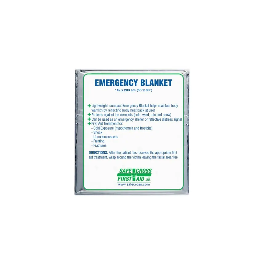 Applications include body warmth maintenance, use as an emergency shelter, protection from the weather and elements, reflective distress signal, protective wrap for victims of fire, accidents, exposure and shock.