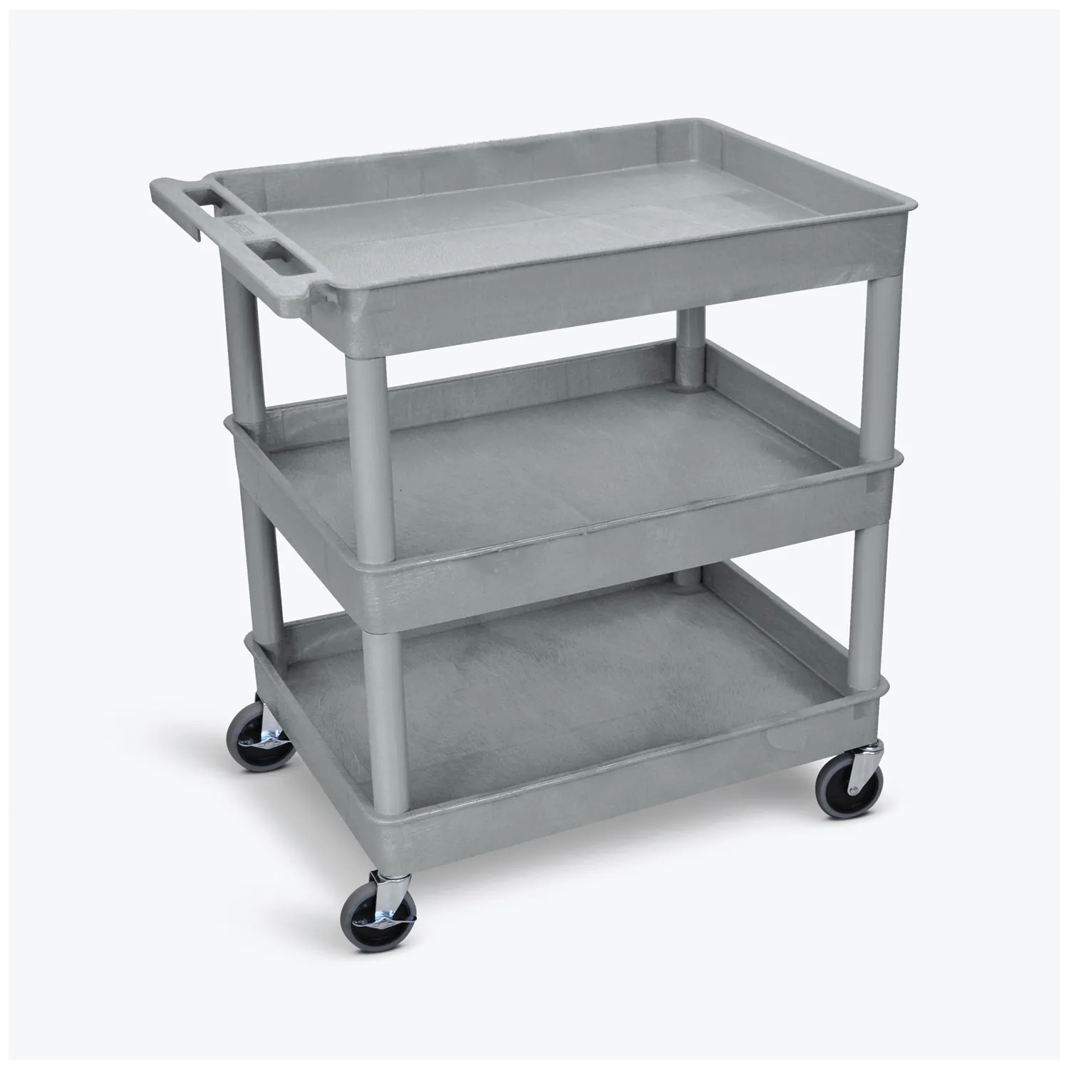 Choose either three tub shelves or flat top shelf and middle, bottom tub shelves utility cart with 4″ casters, two with locking brake. STC111 – 24″W x 18″D x 38.5″H. 2 3/4″ deep tubs. STC211 – 24″W x 18″D x 36.5″H.
