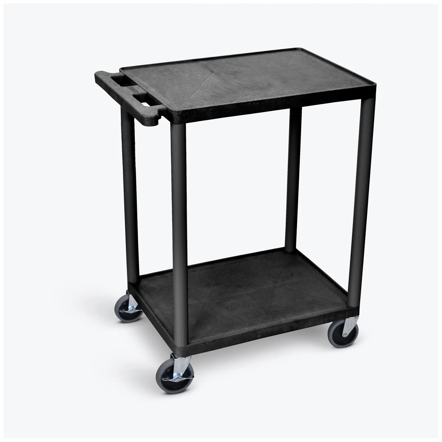 Utility cart with 4″ swivel casters. Assembly required. Specify putty, gray or black color when ordering.