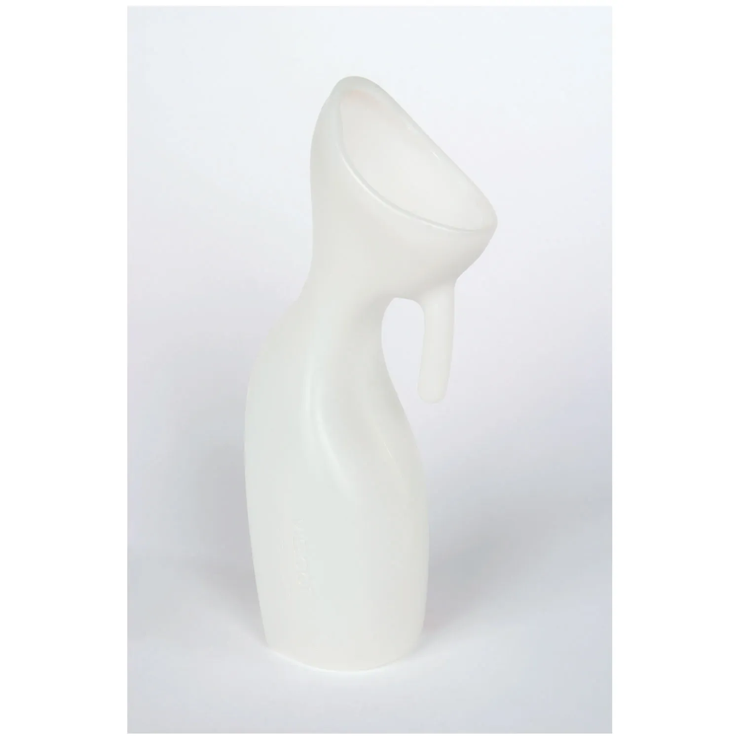 The patented Millie Female Urinal is a uniquely contoured urinal for the female patient. Its design allows for simplified use without the need for a bedpan. The patient may conveniently and effectively use the Millie while lying flat on her back without the need for assistance. Pronounced neck angle helps confine contents when urinal is positioned horizontally. This translucent and disposable female urinal permits measuring ease visualization of contents and is graduated. Specially designed handle conveniently hangs on most styles and sizes of bedrails. Wide base improves standing stability, empty or full.