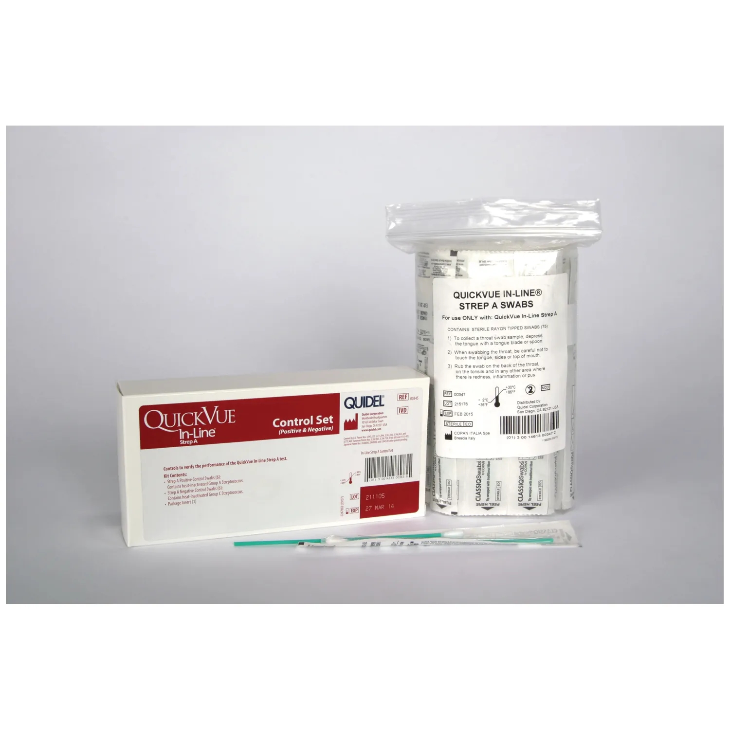 For the rapid detection of group A streptococcal antigen directly from patient throat swab specimens. A truly one-step test via unique patented in-line extraction method reduces hands-on time and provides quick results in 5 minutes or less. Each kit contains positive and negative controls. Room temperature storage with up to 24-month shelf life from date of manufacture. CLIA waived.The unique in-line extraction and rapid procedure allow testing to take place at the point of care. Two-color results give you clear readability, and the proven accuracy of QuickVue provides dependable results. The kit stores at room temperature and includes positive and negative external controls. CLIA wiaved.