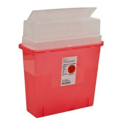 - Unique lid design limits accidental or intentional access to container contents for pediatric and high-risk areas.