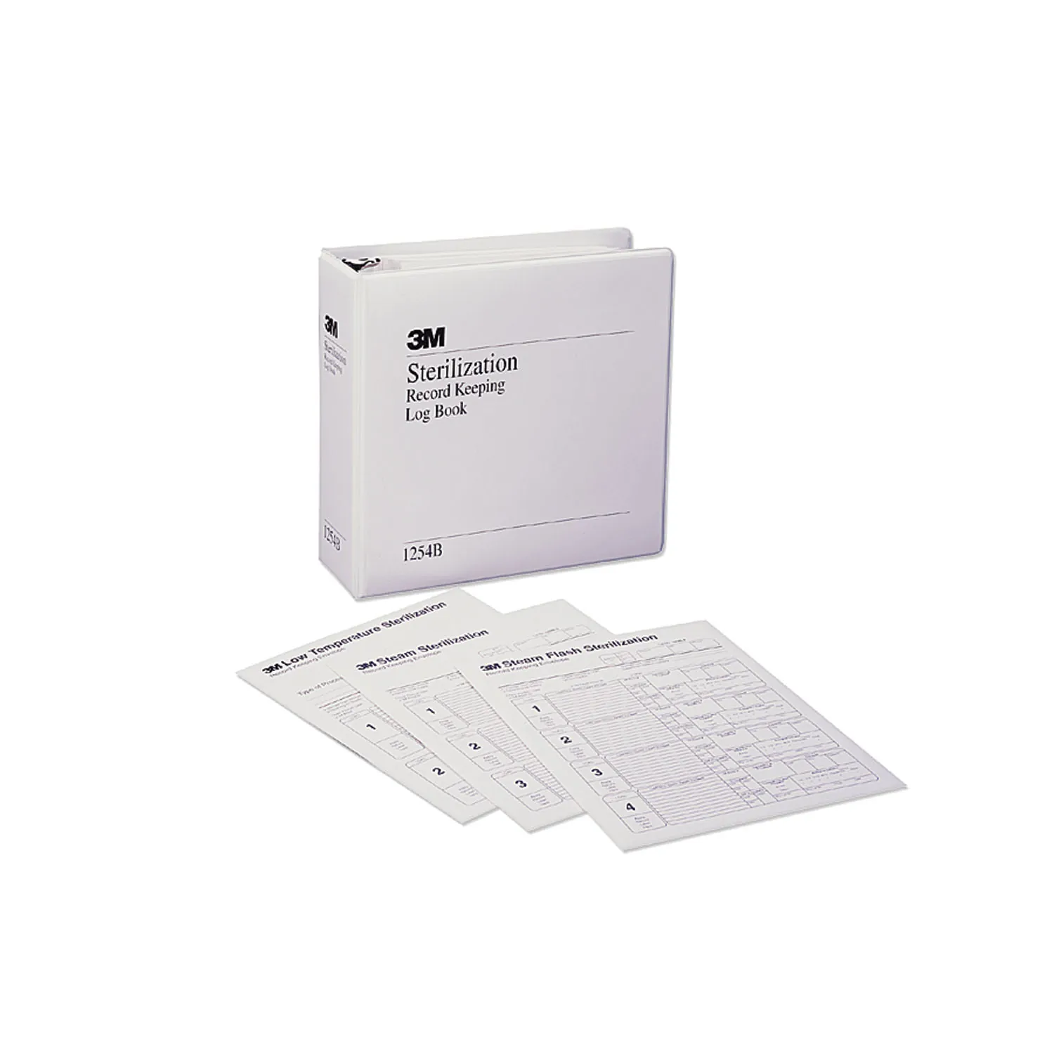 A complete system for maintaining and storing sterilization process information for steam and EO sterilization. Includes load record cards, record forms and sheets, envelopes, and a record binder for storing results.